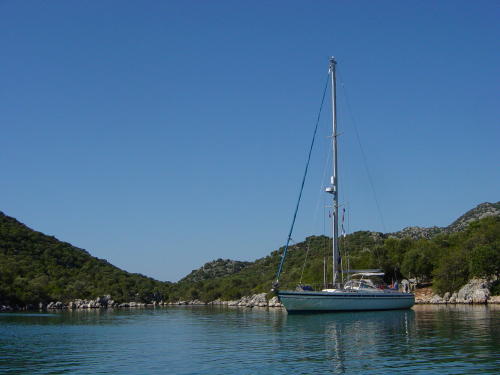 CA cruise in company - by BarryOnce we started "proper" cruising we joined the Cruising Association, a club that includes many experienced and interesting members some of whom do just the sort of sailing we do. On hearing that they were organizing a cruise in company in southern Turkey we signed up eagerly thinking that it would provide a good finish to our season and help us to get our feet under the table at the club. It also seemed an opportune time to invite our friend Jenny from Geneva to join us for some interesting sailing in congenial company. Exploring in company